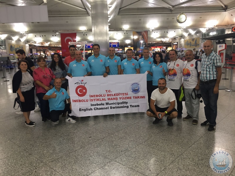 Belediye Başkanımız Engin UZUNER ve yüzücü hemşehrilerimiz Hasan HEKE, Ahmet TEKKEŞİN, Şahin KARAKUŞ, Kadriye KARAKUŞ, Erhan GELGİT, Samet YILMAZER’ den oluşan ‘‘İnebolu Belediyesi İstiklal Manş Yüzme Takımı’’ 01 Eylül 2017 tarihinde İstanbul Atatürk Havalimanından 07.10 uçağı ile İngiltere’ye uğurlandı. Ekip İngiltere’ye uçmadan önce hatıra fotoğrafı çektirdi.