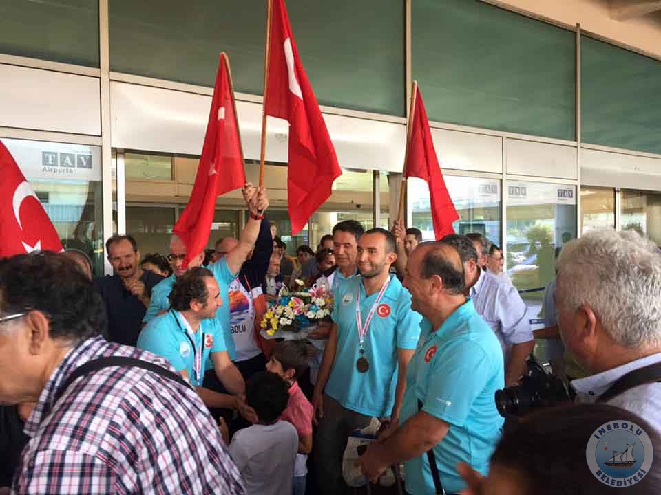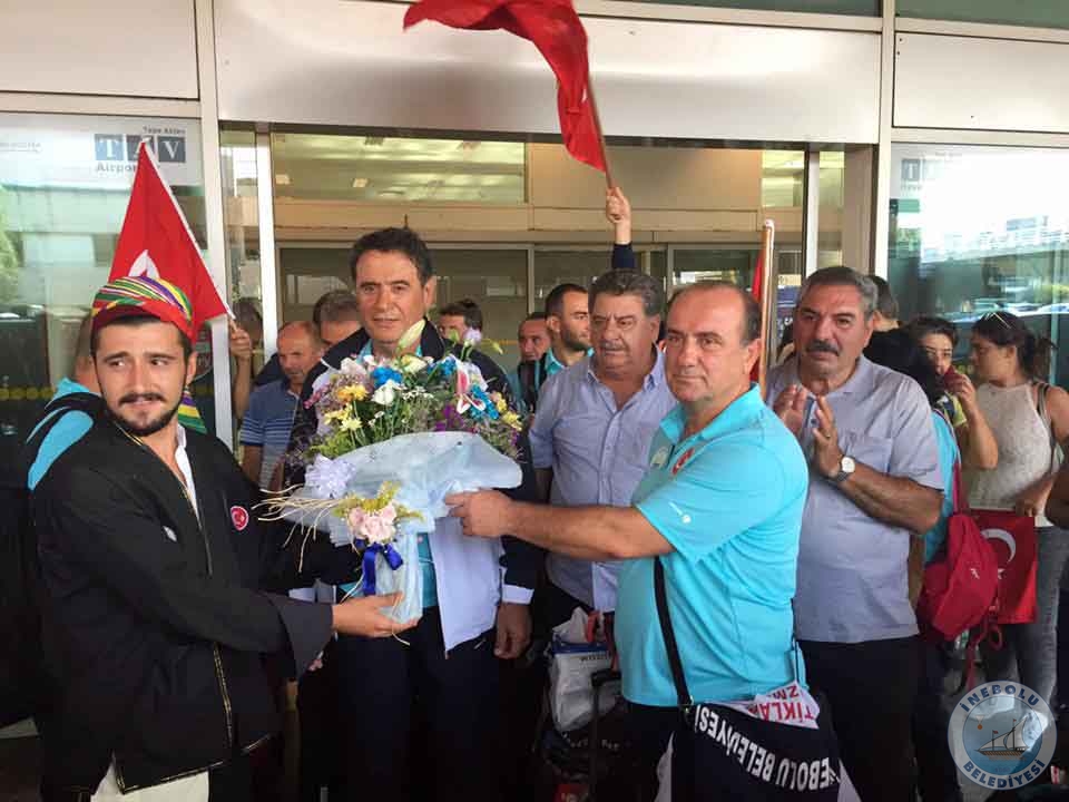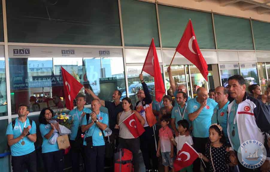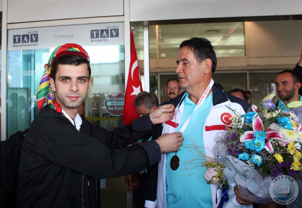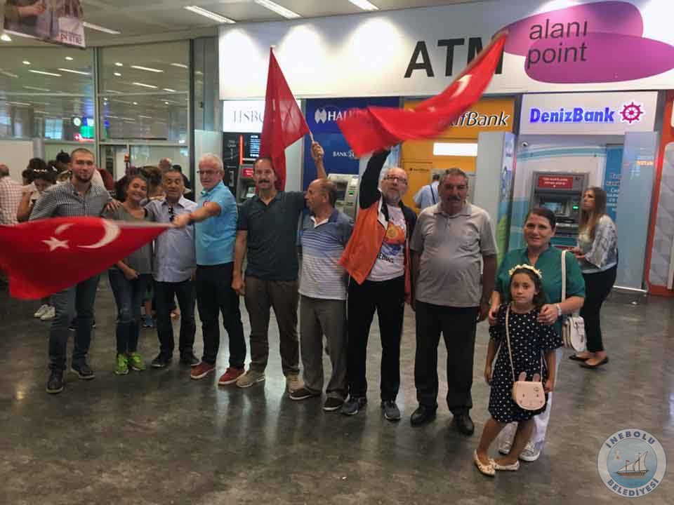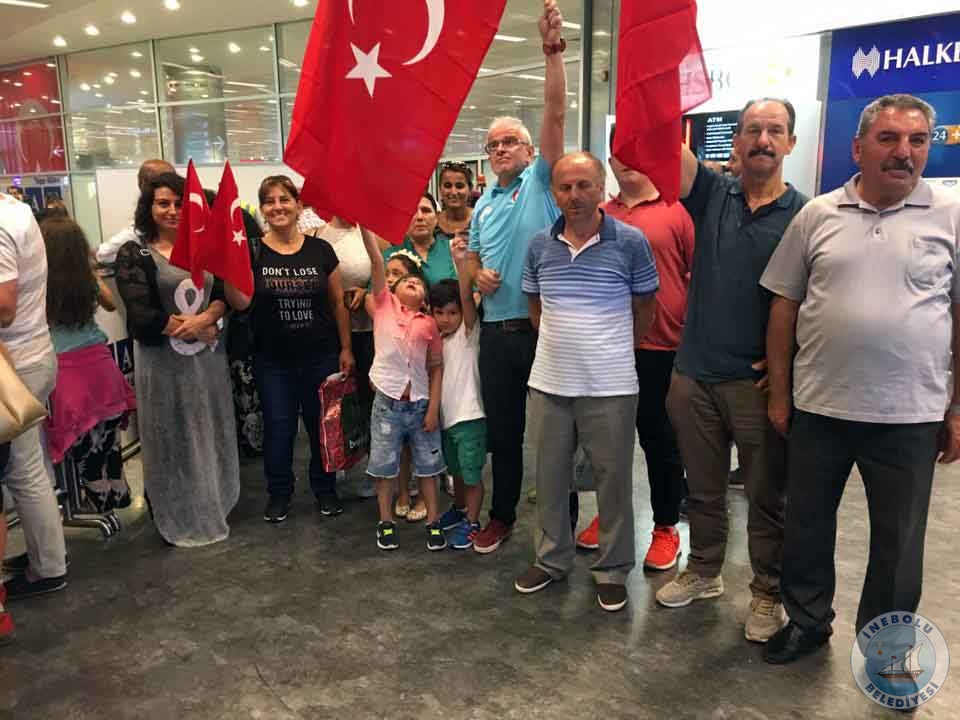 Havalimanına Başkanımızı ve İnebolu Belediyesi İstiklal Manş Yüzme Takımını karşılamak için gelenler, Başkanımızı ve İnebolu Belediyesi İstiklal Manş Yüzme Takımını "İnebolu Sizinle Gurur Duyuyor" sloganları ile karşıladı. İnebolu Belediyesi Heyamola Ekibi, Belediye Başkanımız Engin UZUNER’e çiçek takdim ettikten sonra, İnebolu Belediyesi İstiklal Manş Yüzme Takımına İstiklal Madalyası Madalyonu vererek Heyamola gösterisi sundu. Gösteriyi İHA, DHA, AA ve İnebolu Postası muhabirleri izledi.