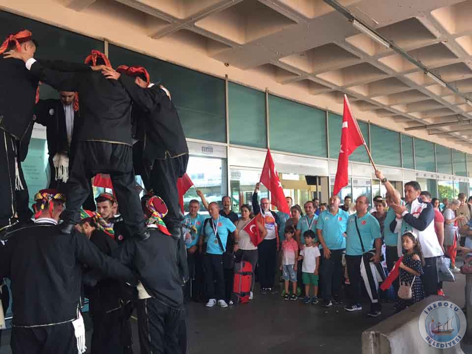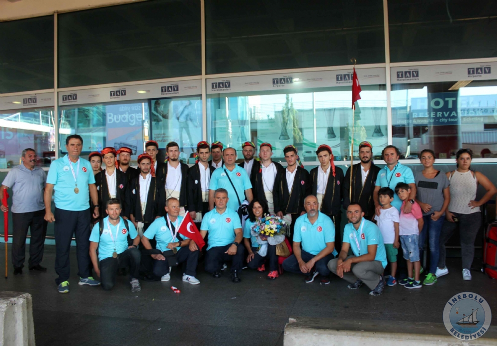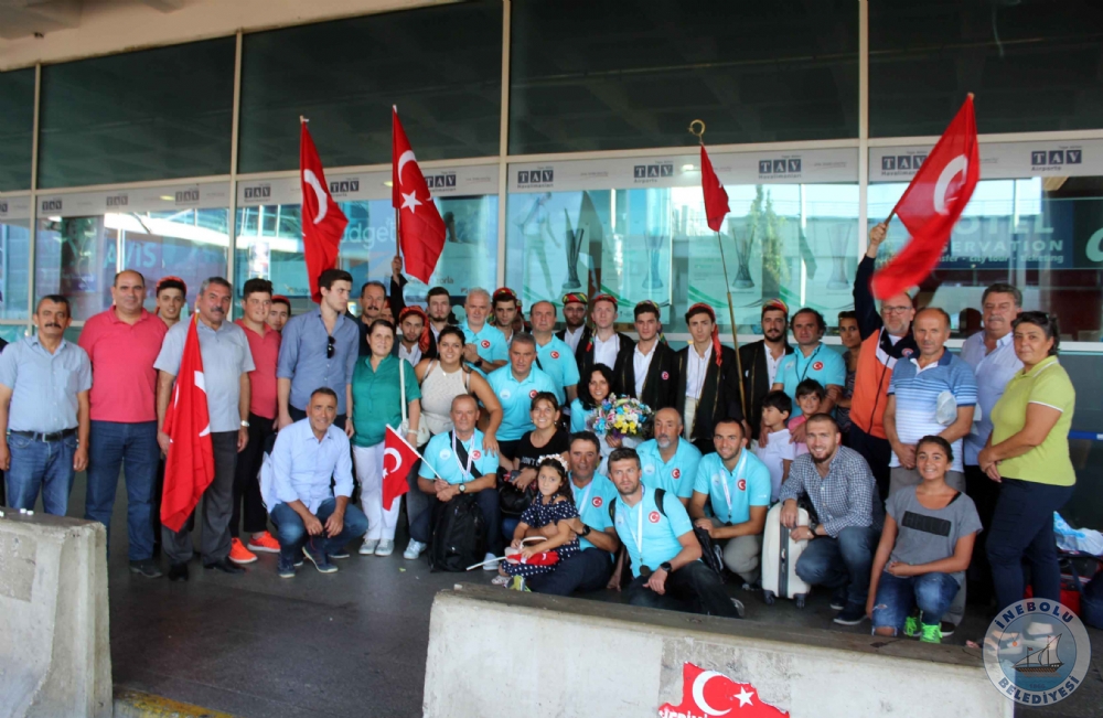 Belediyemiz sponsorluğunda İngiltere’nin Dover kıyısından Fransa’nın Wissant kentine sınırsız kulaçlar atarak başarı ile Manş Denizi geçişini gerçekleştiren İnebolu Belediyesi İstiklal Manş Yüzme Takımı ve Manş geçişi esnasında bizzat yanlarında bulunarak desteklerini esirgemeyen Belediye Başkanımız Engin UZUNER, havalimanı'nda Heyamola ile karşılama yapıldı.