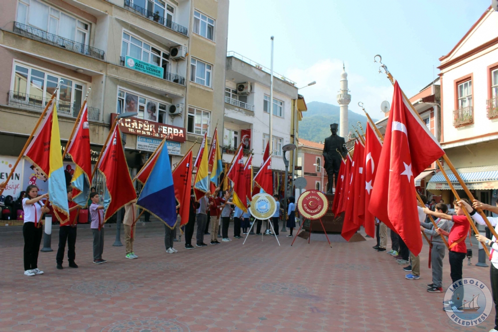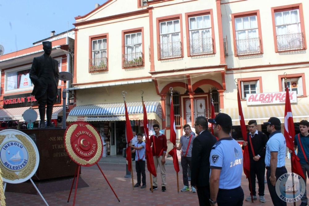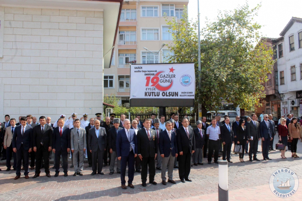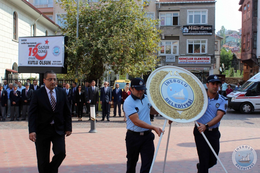 Anıt önündeki  törene  İnebolu Kaymakamı Abdullah Atakan ATASOY, Garnizon Komutanı Kıdemli Başçavuş İrfan TUĞRUL,  Belediye Başkan Vekilimiz Süha ALTINÖZ, Askeri ve Adli Erkan,  Kamu Kurum ve Kuruluşlarının Temsilcileri, Siyasi Parti Temsilcileri ve İlçe Başkanları, Banka Müdürleri ve Gazilerin  katılımı ile gerçekleşti. Kaymakamlık, Belediye Başkanlığı çelengi konularak, Çelenk sunumu tamamlandı.