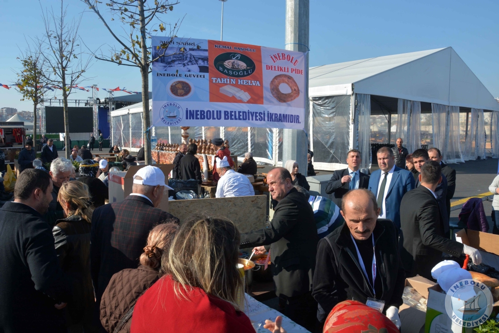 Belediyemizce, 11. İstanbul’da Kastamonu Günlerine katılan katılımcılara İnebolu Göveci ikram edildi. Belediye Başkanımız Engin UZUNER, özel çömleklerde hazırlattığı göveçleri İstanbul’da tanıttı. İnebolu Belediyesinin Tahin Helva ve İnebolu Delikli Pidesi ile birlikte dağıttığı İnebolu Göveci, etkinliği ziyaret eden konuklar tarafından büyük ilgi gördü. Belediye Başkanımız Engin UZUNER’in bizzat dağıttığı İnebolu Gövecini almak için konuklar uzun kuyruklar oluşturdu. İnebolu Belediyesi yapmış olduğu ikram ile de göz doldurdu.