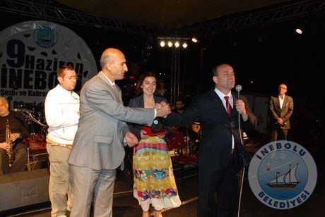 9 Haziran Şeref ve Kahramanlık günü etkinliklerine Karadenizli ünlü sanatçı Volkan KONAK geceye damgasını vurdu.Volkan Konak alanı dolduran binlerce kişiyi çoşturdu.Belediye Başkanımız Engin UZUNER kendilerine İnebolu amblemli tabak ve çiçek hediye etti.Başkanımız Tarım Kredi Kooperatifi Müdürü Hüseyin Ercan AKKAN'a övgü dolu sözlerle sahneye çağırarak etkinliklerine katkılarından dolayı plaket sundu.Fotograflar:Celal Bekiroğlu