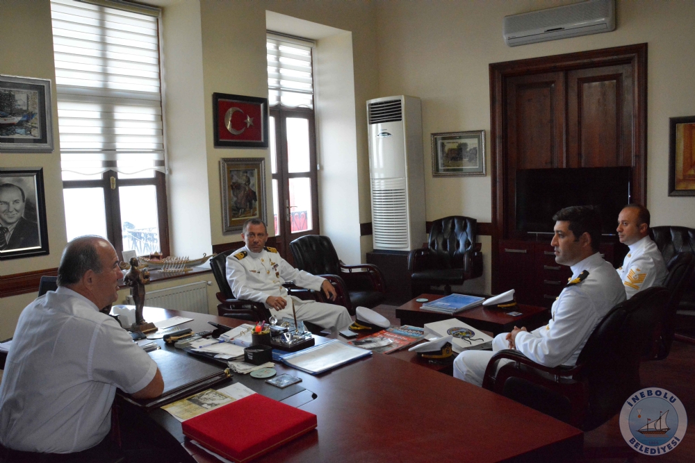 ‘‘25 Ağustos Şapka ve Kıyafet İnkılabı’’ kapsamında İnebolu Limanına gelen TCG YAVUZ Gemisinin Komutanı Deniz Yarbay Timuçin Halil YILDIRAN, Deniz Yüzbaşı Ali DİNGEÇ, Snr. Asb. Kd. Bçvş. Fatih ERSAN, Belediye Başkanımız Engin UZUNER’i 27 Ağustos 2018 Pazartesi günü Başkanlık Makamında ziyaret ettiler.