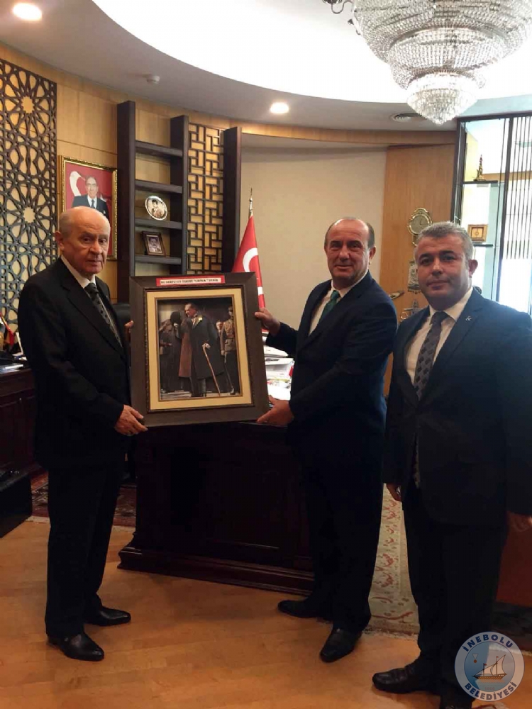 Belediye Başkanımız Engin UZUNER, ziyarette MHP Genel Başkanı Dr. Devlet BAHÇELİ’ye elinde şapkası bulunan Atatürk tablosu hediye etti. Ziyaretleri nedeniyle Belediye Başkanımız Engin UZUNER ve MHP İlçe Başkanı Mustafa ATEŞ’e teşekür eden MHP Genel Başkanı Dr. Devlet BAHÇELİ, İnebolu’ya selamlarını iletti.