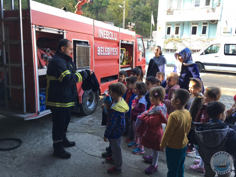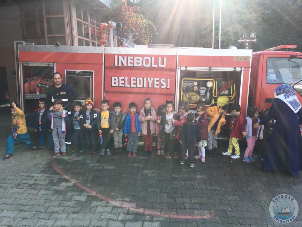Minik öğrenciler, Belediyemiz İtfaiye Amir V. Mesut SAYGIOĞLU’ndan itfaiye ile ilgili bilgiler alarak yangınların nasıl söndürüldüğünü öğrendiler.