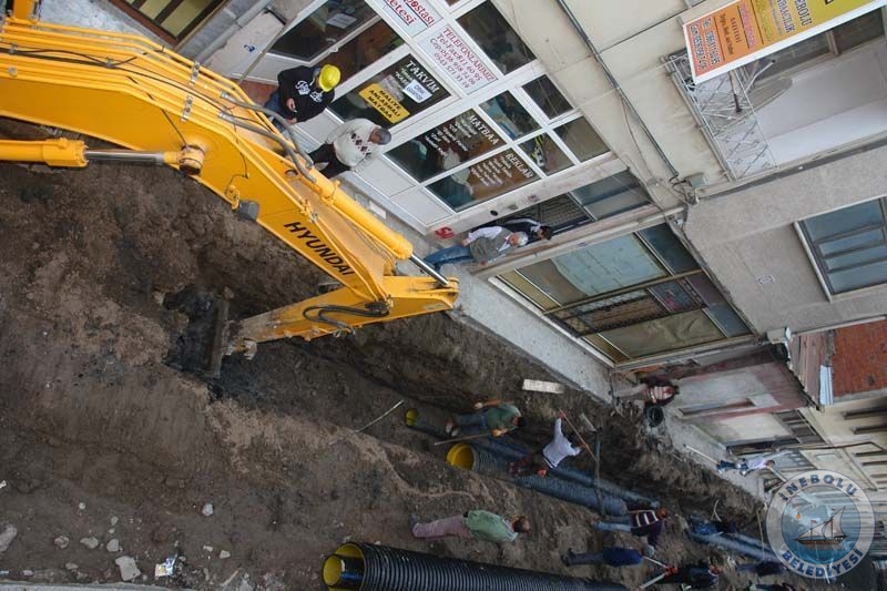 Belediyemizce, İlçemiz Yeni Camii Sokak, Uğur Mumcu Sokak, Karagülle Caddesi ve Hürriyet caddesi yol yapım çalışmaları süratle devam ediyor.