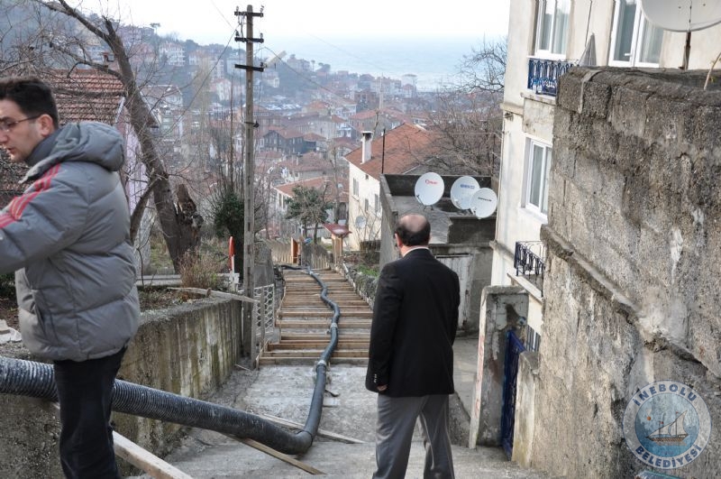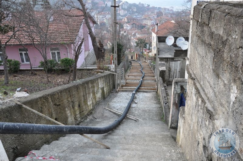İlçemiz Mustafa Kemal Paşa Caddesini Hastane Caddesine bağlayan, Devlet Hastanesine çıkan uzun yıllardır bakımsız duran merdivenler Belediyemizce yeniden yapılıyor. Merdivenler yapılacak korkulukların ve duvarın ardından tamamlanarak halkımızın istifadesine sunulacak.