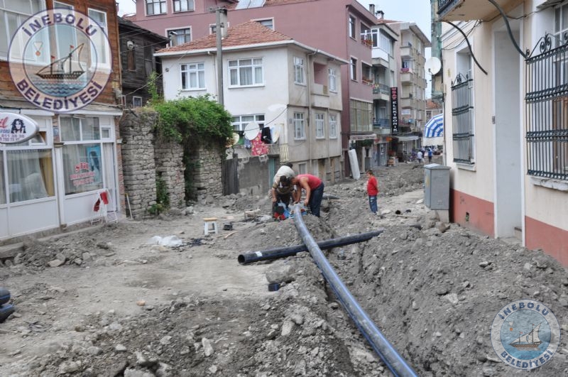 İlçemiz M.Kemal Paşa Caddesinde alt yapı çalışması süratle devam ediyor. Belediyemizce, caddeye kanalizasyon borularının yerleştirilmesinin ardından, içme suyu yeni şebeke borularının döşenmesine başlandı.