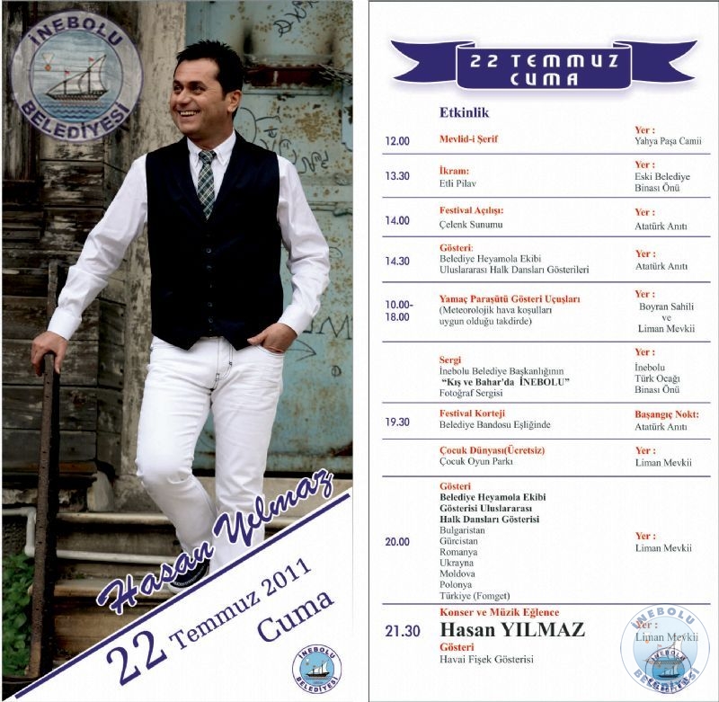 22-23-24 Temmuz 2011 tarihlerinde gerçekleşecek "İnebolu 2. Uluslararası Heyamola Deniz Şenlikleri Kültür ve Sanat Festivali " hazırlıkları süratle devam ediyor.