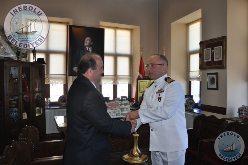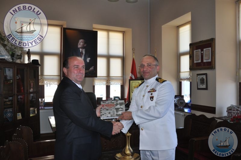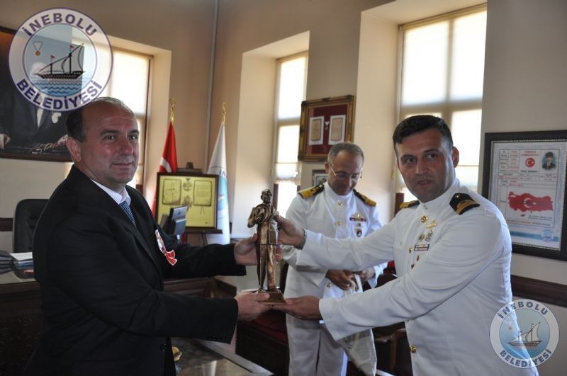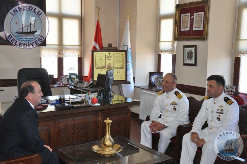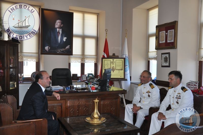 Büyük Önder Mustafa Kemal Atatürk’ün İnebolu’ya Gelişleri, Şapka ve Kıyafet İnkılabı’nın 86.yıldönümü kutlamalarına iştirak etmek maksadıyla ilçemize gelen TCG SALİHREİS Fırkateyni Komutanı Dnz.Kr.Yb.Özcan ALTUNBULAK ve Dr.Dz.Bnb.Burak GÖKALP Belediye Başkanımız Engin UZUNER’i makamında ziyaret ettiler.