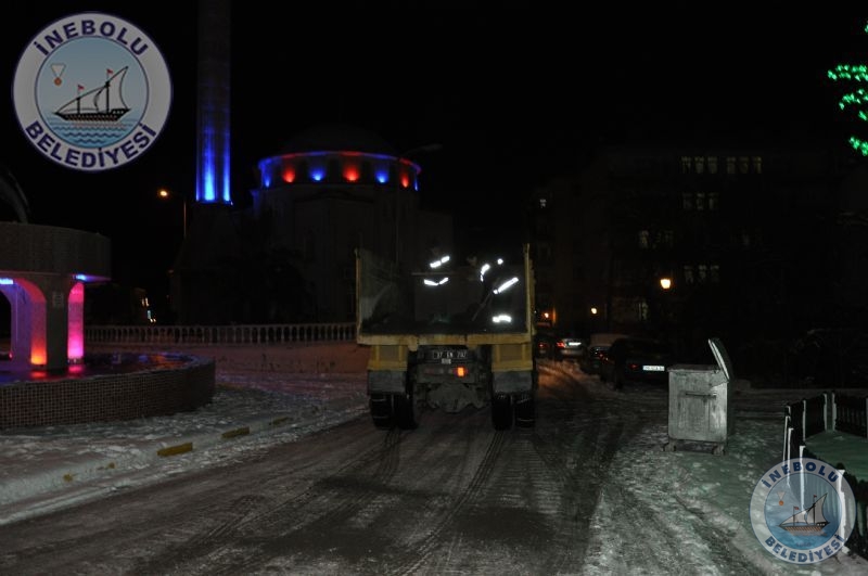 İnebolu Belediyesi, İnebolu’da aşırı soğuklara ve hafta başından beri etkili olan kar yağışına karşı çalışmalarını yoğun şekilde sürdürüyor.