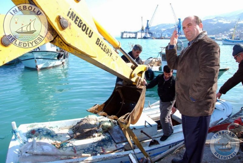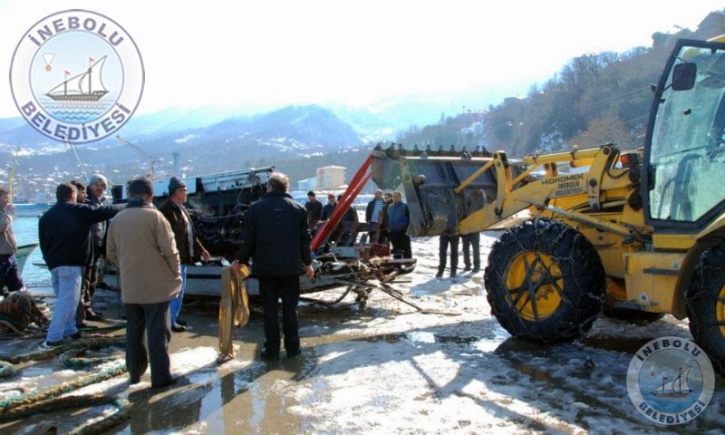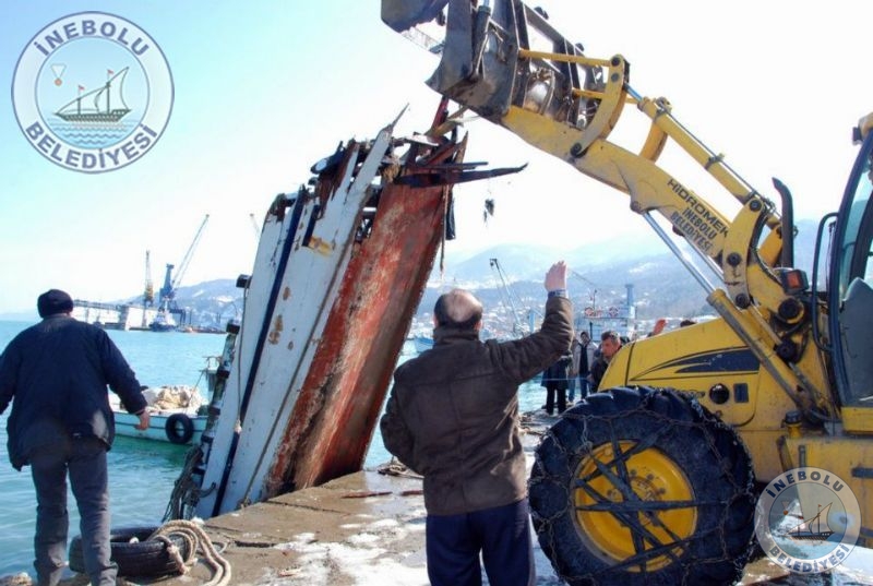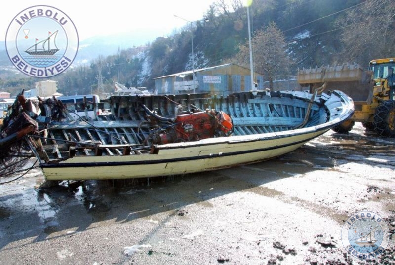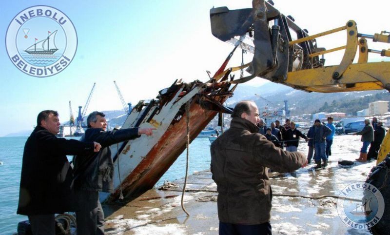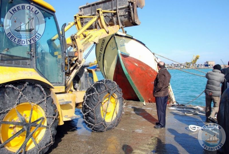07 Şubat 2012 Salı günü etkili olan, limanda büyük tahribata neden olan fırtına ve dalgalarla batan iki balıkçı teknesi Belediyemiz ekipleri yardımıyla denizden çıkartıldı.