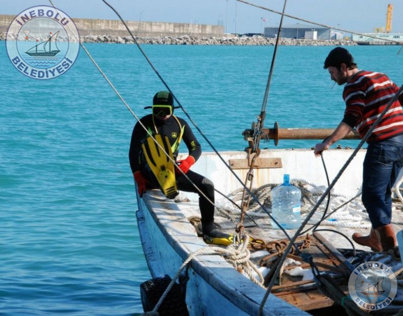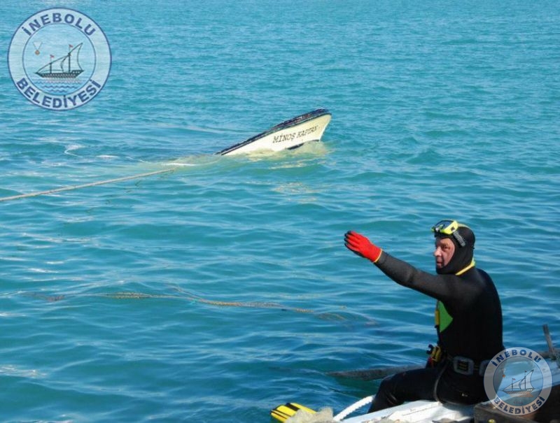 Belediye Başkanımızın da limanda bizzat takip ettiği çalışmalarda, batan balıkçı  teknelerine Dalgıçlar tarafından  halat bağlanılarak,  Belediyemiz kepçesi  tarafından karaya çıkartıldı.