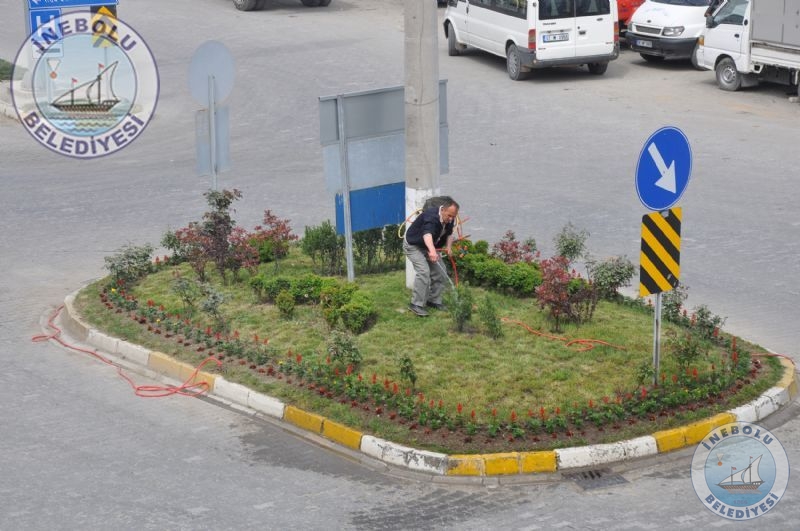 Kış mevsiminin ardından baharın gelmesiyle birlikte Belediyemiz Zafer yolu caddesi orta refüj ile Belediye hizmet binası  önünde yer alan kavşağı çeşitli çiçeklerle  renklendirdi.