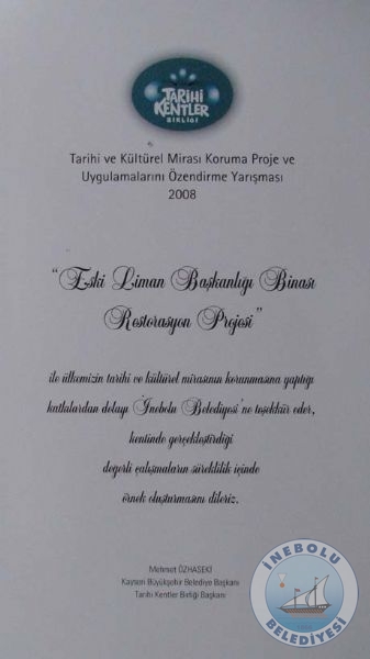 Tarihi ve Kültürel Mirası Koruma Proje ve Uygulamalarını Özendirme Yarışmasında "Eski Liman Başkanlığı Binası Restorasyon Projesi" ile Tarihi Kentler Birliği'nden bir ödül daha aldık.