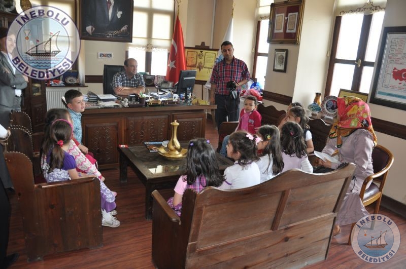 Okul Öncesi Eğitimi Şenlik Programı kapsamında Mustafa Şerbetçi İlköğretim Okulu Ana Sınıfı Öğretmen ve Öğrencileri 28.05.2012 Pazartesi günü Belediye Başkanımız Engin UZUNER’i Makamında ziyaret ettiler ve Öğrenciler Belediyemiz hoparlöründen şiirler okudu.