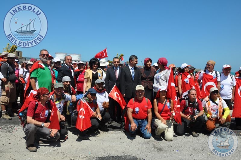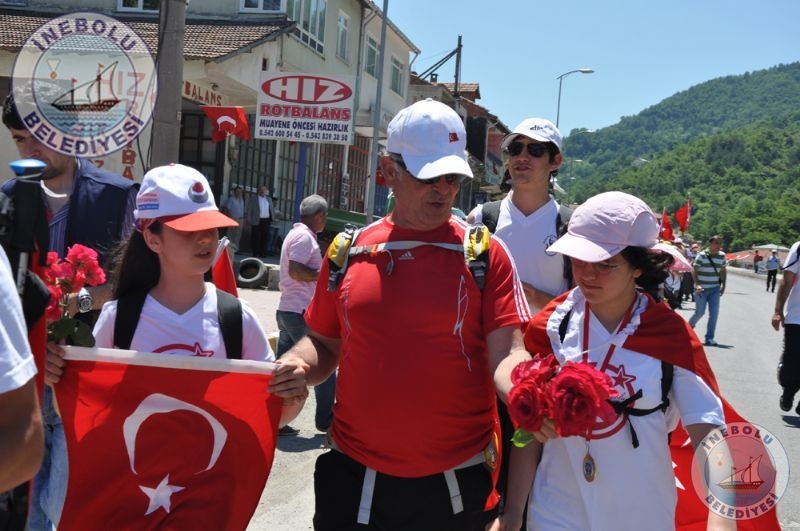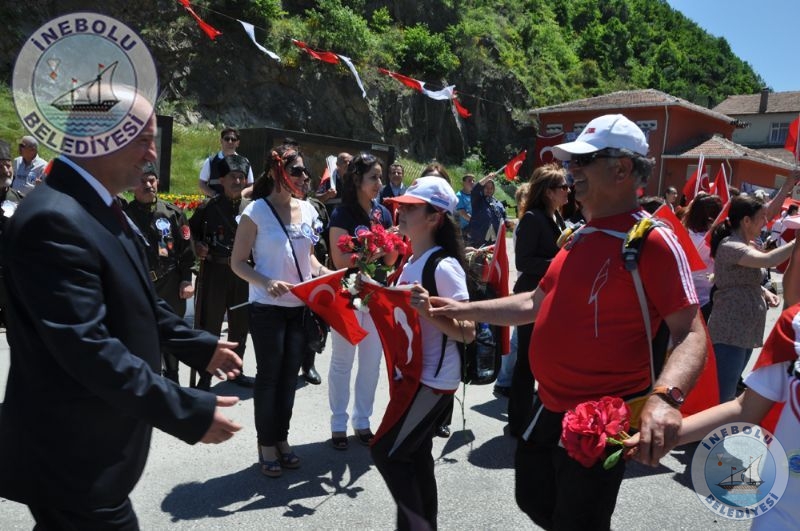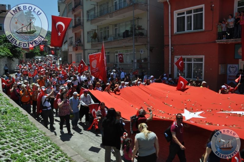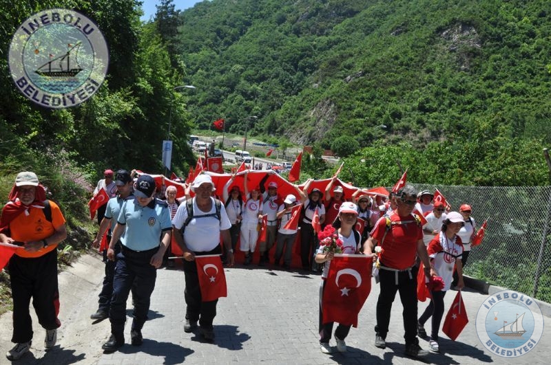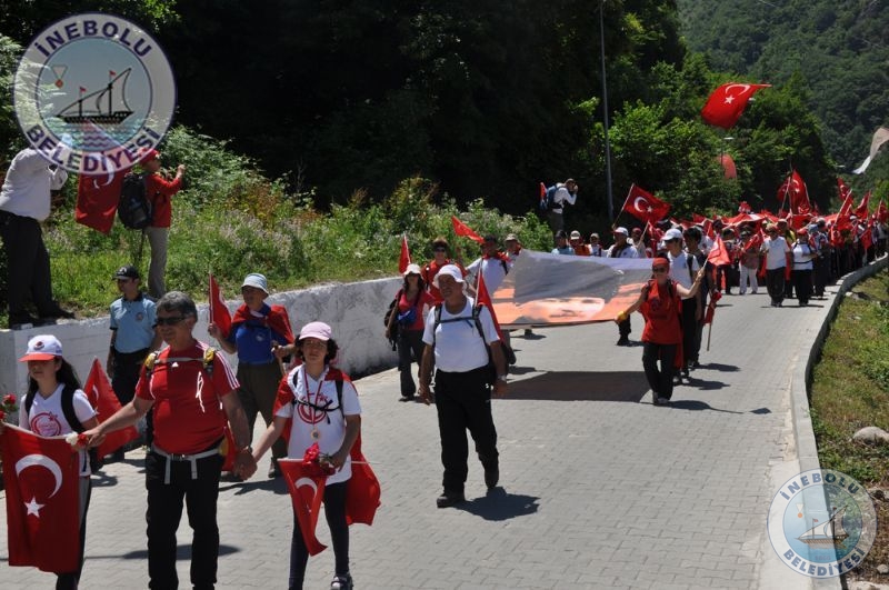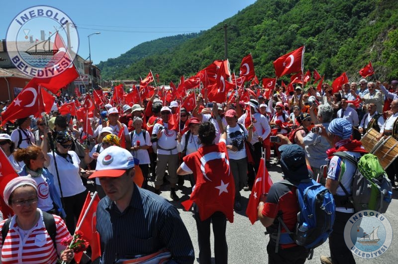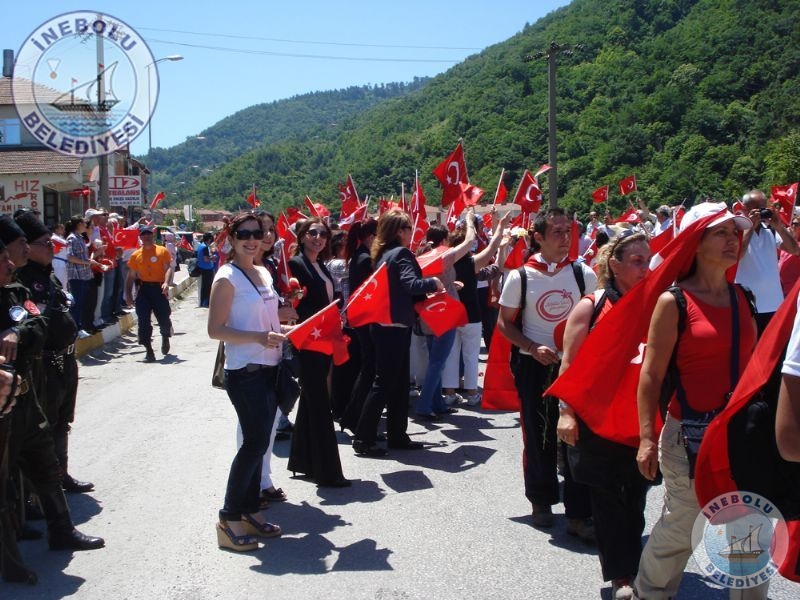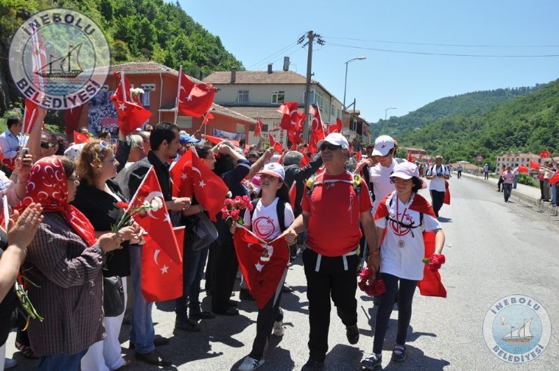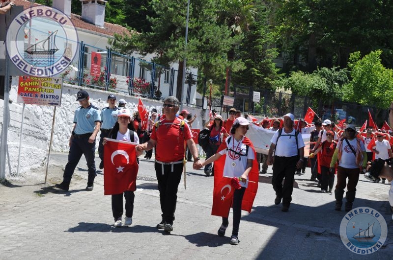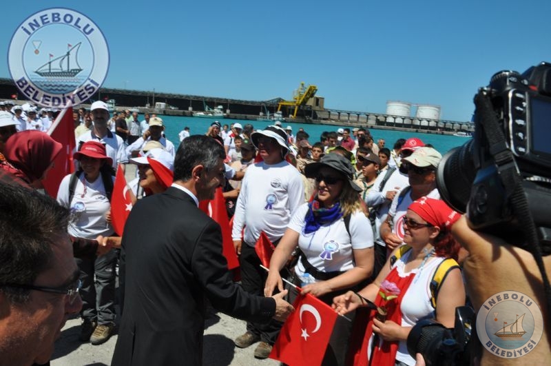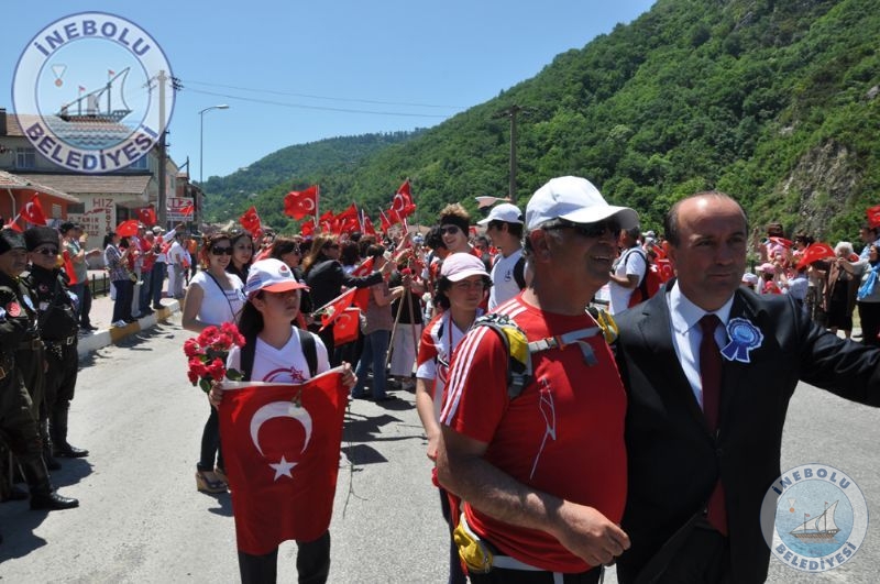 Saygı Duruşu ve İstiklal Marşının okunmasından sonra 6 Haziran tarihinde Kastamonu merkezinde yola çıkarak Kastamonu-Seydiler-Küre-İnebolu hattı üzerinden 95 km’lik mesafeyi ellerinde bayraklarla yürüyerek kat eden İstiklal Yolu yürüyüşçüleri İnebolu Limanına gelen grubun en küçük katılımcısı olan engelli Deniz UĞRASIZ, İnebolu Limanında düzenlenen törenle Türk Bayrağını Vali Erdoğan BEKTAŞ’a teslim etmeleri ile program başladı.