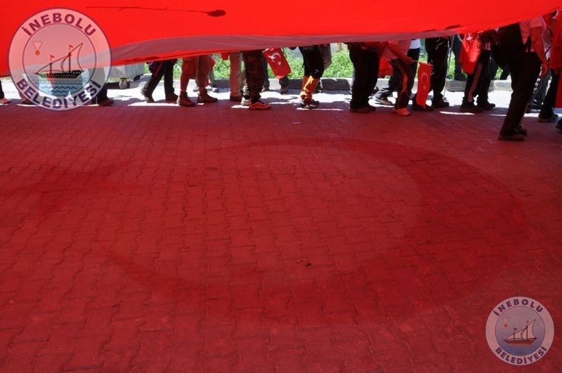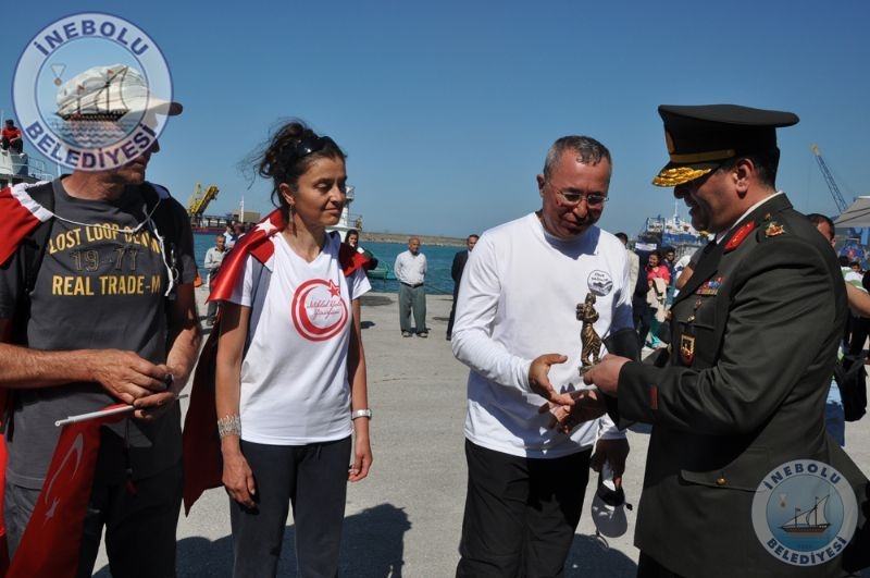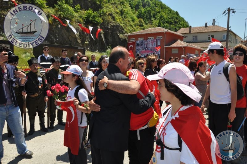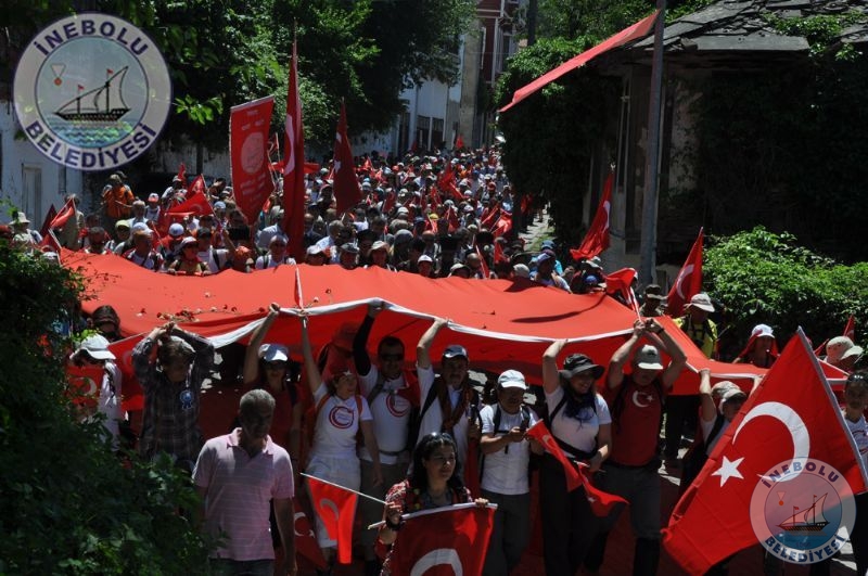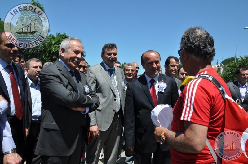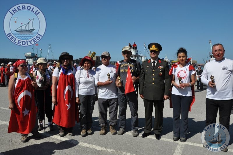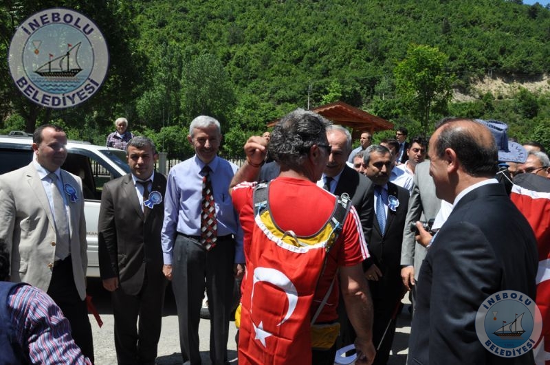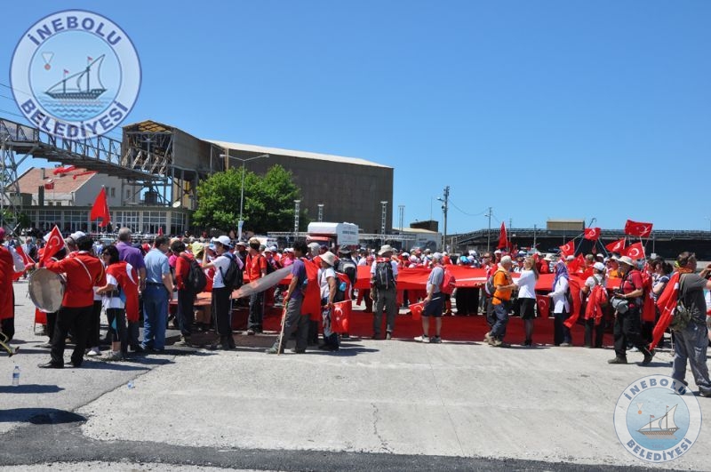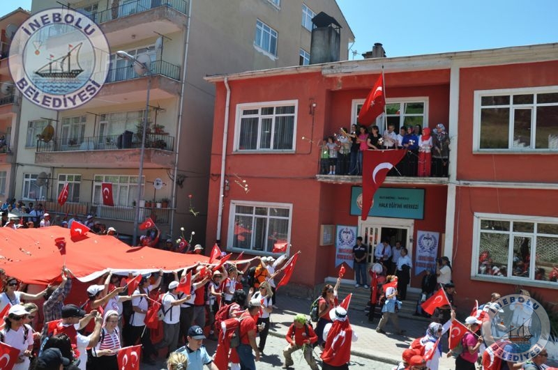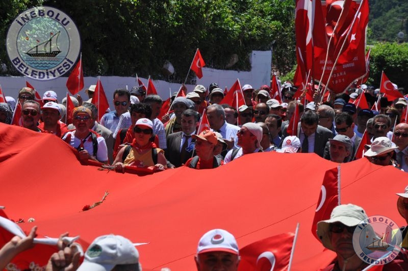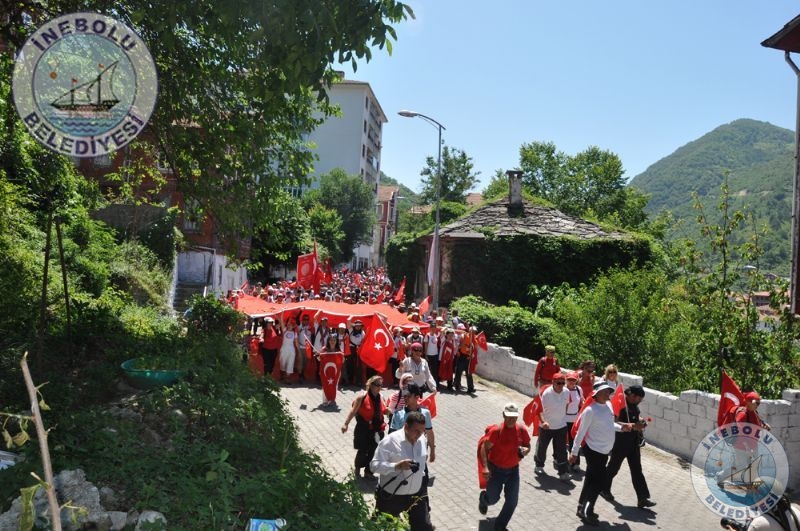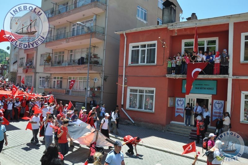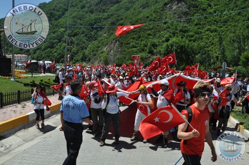 Saygı Duruşu ve İstiklal Marşının okunmasından sonra 6 Haziran tarihinde Kastamonu merkezinde yola çıkarak Kastamonu-Seydiler-Küre-İnebolu hattı üzerinden 95 km’lik mesafeyi ellerinde bayraklarla yürüyerek kat eden İstiklal Yolu yürüyüşçüleri İnebolu Limanına gelen grubun en küçük katılımcısı olan engelli Deniz UĞRASIZ, İnebolu Limanında düzenlenen törenle Türk Bayrağını Vali Erdoğan BEKTAŞ’a teslim etmeleri ile program başladı.