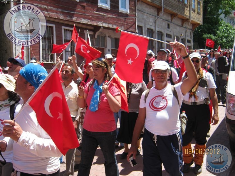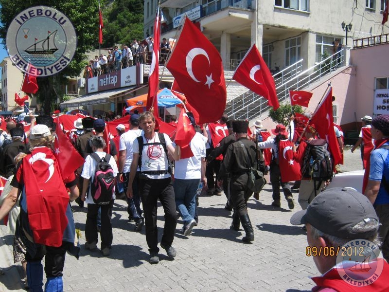 “Her yıl düzenlediğiniz ve bu yılda 6-9 Haziran 2012 tarihlerinde yaptığınız, çok anlamlı bir o kadar gururlu ATATÜRK VE İSTİKLAL YOLU YÜRÜYÜŞÜNE İzmir Karşıyaka Dağcılık Kulübümüzden (www.kardak.org) 6 arkadaşımız katılmıştır. Arkadaşlarımızı en çok İnebolu İlçenizde Haklınızın, kısaca tüm herkesin coşkusu çok etkilemiş ve kendi ifadelerine göre ağlamışlardır. Bu nedenle, başka Belediye Başkanımız sayın Engin UZUNER'e ve Belediye çalışanlarına ve de tüm İnebolu Halkına İzmir Karşıyaka Dağcılık Kulübümüz olarak çok teşekkür ediyoruz. Sizlere Kulübümüzün bu anlamlı yürüyüşte çektiği birkaç resmide gönderiyorum. Saygılarımızla...”