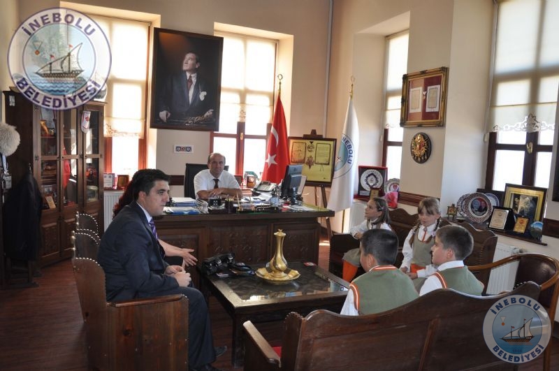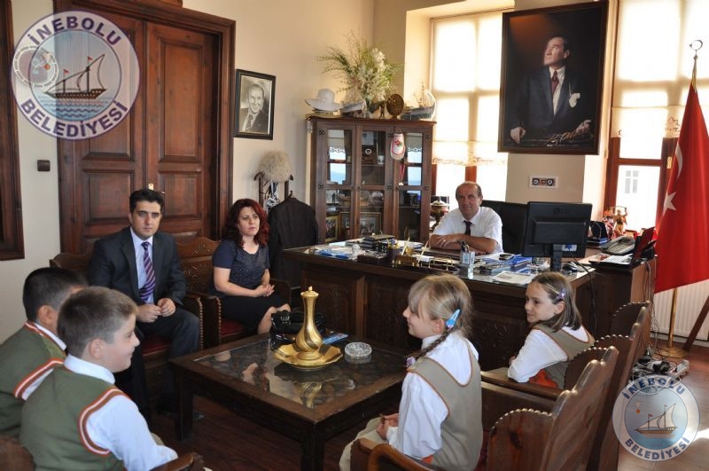 Okullarımızın açılışı ve İlköğretim haftası kapsamında 17 Eylül 2012 Pazartesi günü İlçemiz Mehmet Bülent ÖZYÜRÜK İlköğretim Okulu Müdürü Fatih GÜNGÖR, Sınıf öğretmeni Tijen ATAN ve öğrenciler Belediye Başkanımız Engin UZUNER'i Makamında ziyaret ettiler.