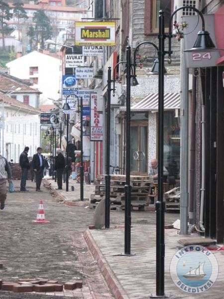 Belediyemiz tarafından gerçekleştirilen ilçemiz Cumhuriyet Caddesinin yol yapım çalışmaları süratle sona yaklaşıyor. Caddeye, aydınlatma direklerinin takılmasına başlandı.