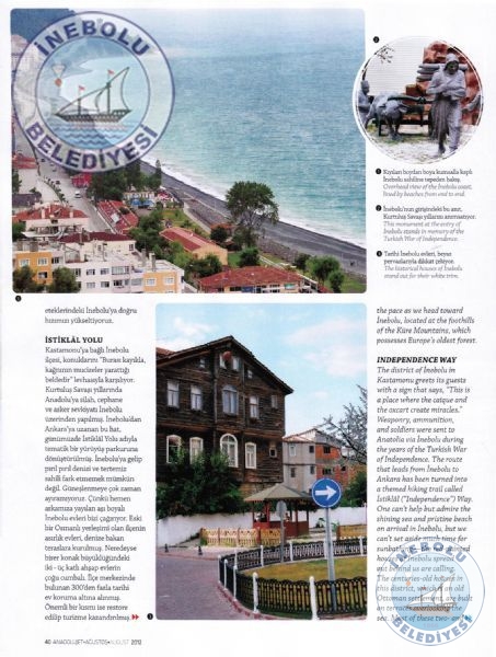 THY tarafından ayda bir yayımlanan ANADOLU Jet Dergisi, Ağustos ayı sayısında “ANADOLU’NUN EN YAŞLI ORMANINDA “ başlığı ile Melih USLU'nun yeşilin bin bir tonunu barındıran Batı Karadeniz’de İnebolu’dan Çatalzeytin’e uzanan serin bir yaz rotası yazısı ,İbrahim USTA'nın objektifinden fotoğraflarla, İlçemiz İnebolu‘ nun tanıtımına yer verdi.