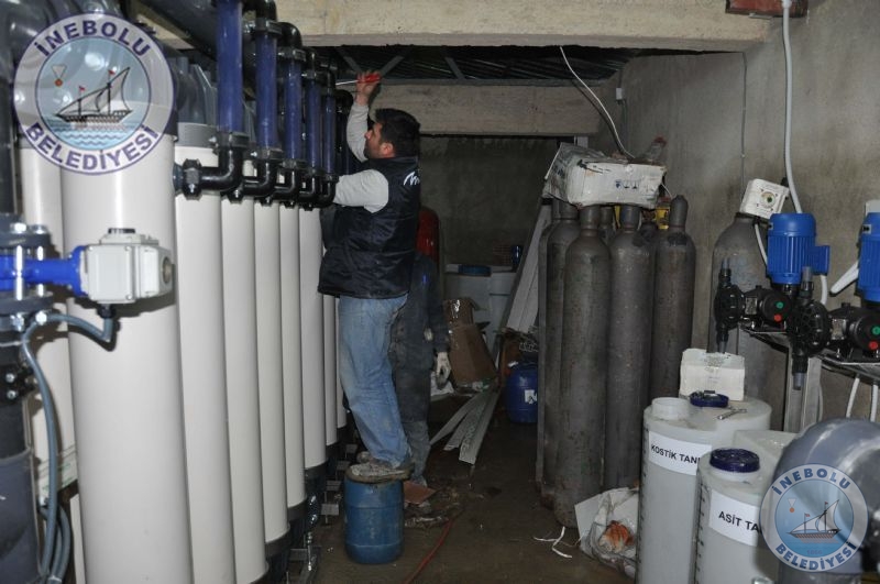 Yaz döneminde kullanıma alınan Başköy su kaynağı ise ilçemizden tahmini 30km uzaklıktaki mevkilerde yoğun yağış olduğu zamanlarda bulanmaktadır. Bulanıklık oranı %80lerde olduğu zaman ilçemizin suyunu arıtmakta olan arıtma tesisi yetersiz kalmakta ve arıtma tesisi kesintisiz çalıştığı halde su bulanıklık oranı fazla olduğunda arıtma sisteminin kapasitesinin yetersiz kaldığını tespit ettik. Tamamen arıtma sisteminin kapasitesinden kaynaklanan bu durumu giderebilmek için, Belediyemizce yeni ultrafilitrasyon arıtma sistemi ihalesini gerçekleştirdik. Halkımızın daha temiz su içebilmeleri için Su depolarına Ultrafilitrasyon sisteminin montajına başlanmıştır. İnebolu’muza Hayırlı olsun .” dedi.
