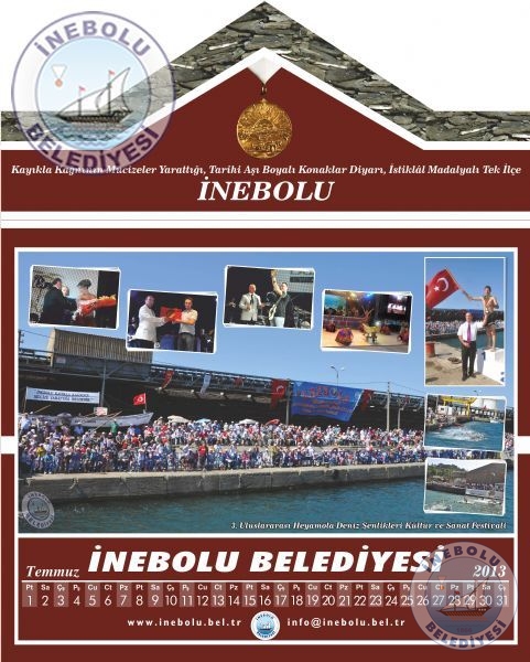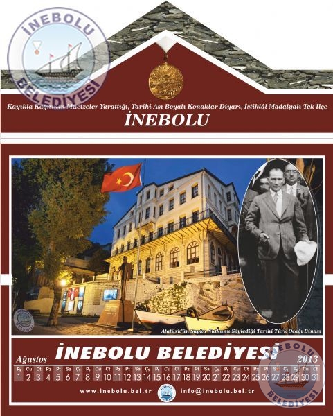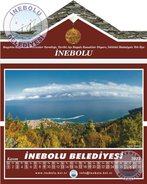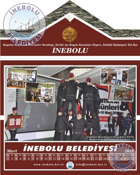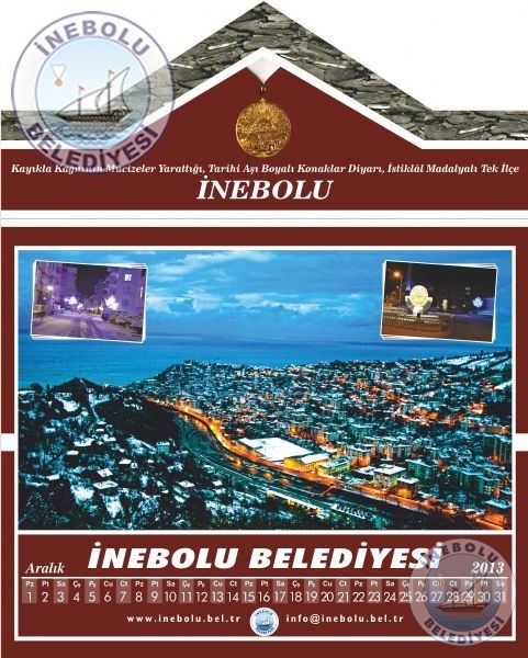 Belediyemiz vatandaşlardan gelen yoğun istek üzerine İlçemizi tanıtıcı fotoğraflardan oluşan 2013 yılı takvimi bastırdı. Aşı boyalı İnebolu konağı görünümündeki 2013 yılı takvimi vatandaşlarımızın beğenisini kazandı.