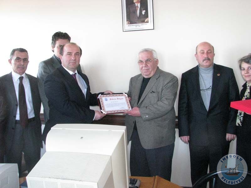 İnebolu Belediye Meclisinin 04.01.2010 tarihli toplantısında alınan karara istinaden; İlçemize yaptığı destek ve yardımlarından dolayı Sayın Ömer URGANCI’ya, İnebolu Belediye Meclisinin 01.02.2010 tarihli toplantı müteakibi Belediye Başkanımız Sayın Engin UZUNER Meclis Üyelerinin huzurunda “Plaket” ve “Şükran Belgesi” takdim edildi. Sayın Dr. Salih OSMANOĞLU, Sayın Prof.Dr. Ahmet MARANKİ, Sayın Mustafa ŞERBETÇİ ve Sayın Bülent ÖZYÜRÜK’e verilecek Plaketler ve Şükran Belgeleri, Belediye Başkanımız Engin UZUNER tarafından ileriki günlerde bizzat yapacağı ziyaretleri esnasında takdim edilecektir