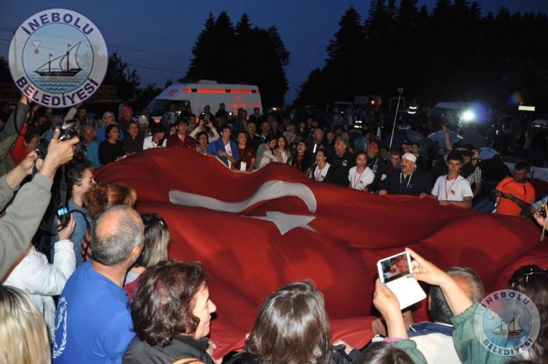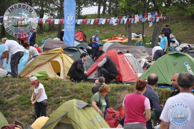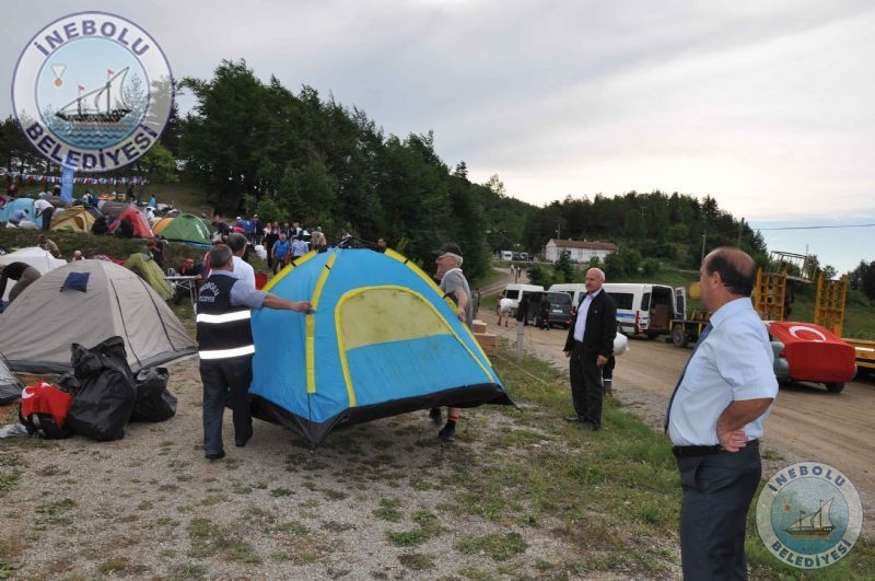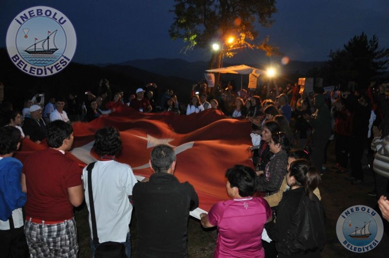 İnebolu Kaymakamı Gökhan GÖRGÜLARSLAN, Belediye Başkanımız Engin UZUNER, İl Kültür ve Turizm Müdürü Ziver KAPLAN kamp alanındaki çadırları gezerek yürüyüş gruplarından etkinlik hakkındaki görüşlerini aldılar. Herhangi bir aksaklığın olup olmadığı soruldu. Belediyemiz Çuha Doruğunda Yürüyüşçülere akşam yemeğinin yanı sıra meyve ikramında bulundu. İnebolu Belediyesi Başkanımız ve Personelimiz ile hizmette kusur sağlamadı. Belediye Başkanımız Engin UZUNER tarafından, Yürüyüşçülerimize içerisinde İstiklal Madalyası, Şehit Şerife Bacı kitabı ve İnebolu resimli ajandanın yer aldığı İnebolu Belediyesi çantası bizzat dağıtıldı. Milli mücadelede İnebolu’nun ve İstiklal Yolunun önemi belgesel halinde Slayt gösterisi ile Yürüyüşçülere izletildi. İnebolu Belediyesince ilçemiz halkından Çuha doruğu mevkiine gelmek isteyen vatandaşlarımız için çarşı içinden minibüsler kaldırıldı. Slayt gösterisi esnasında Yürüyüşçüler duygu dolu anlar yaşadılar. Ardından İnebolu Halk Eğitimi Merkezi Saz kursiyerleri tarafından sazlar çalındı, söylendi. Ardından İnebolulu hemşehrimiz Sanatçı Soner’in, Şarkıları eşliğinde Yürüyüşçülerimiz ve İnebolu halkı coşku dolu bir gece geçirdiler. İnebolu Belediyesine sağlanılan imkânlardan dolayı teşekkür ettiler.