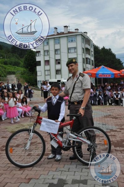 Ardından, Hüseyin Avni İlkokulunun en başarılı öğrencisi Altuğ DOĞDU’ya Bisiklet Hediyesi Garnizon Komutanı Halil AYDEMİR  ve  en çok  kitap  okuyan  öğrenciye bisiklet  hediyesi, İnebolu Meslek Yüksekokulu Md.Yrd. Filiz AKGÜÇ tarafından verildi. Müteakibinde Okul Bahçesinin açılış kurdelası okul  öğrencileri  tarafından kesildi.