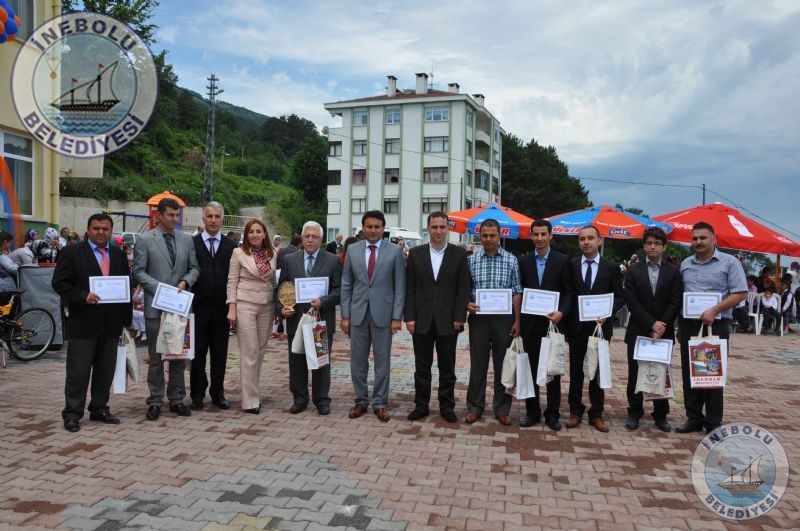 Program  daha  sonra  ödül  töreni  ile  devam  etti.  9 Haziran İnebolu Şeref ve Kahramanlık Günümüzün 92. Yıldönümü etkinlikleri kapsamında, kutlama  programında  görev  alan idareci ve öğretmenlerimiz, Belediye Başkanımız Engin UZUNER tarafından Teşekkür Belgesi, İstiklal Madalyası  Rölyefi, Şerife Bacı  Rölyefi, Öğretmenlerimize  hediye  jesti ile İlçemizi  tanıtıcı basılı Materyallerin  yer  aldığı İnebolu  Belediyesi  çantası ile  ödüllendirildi.