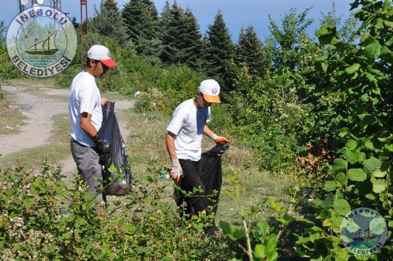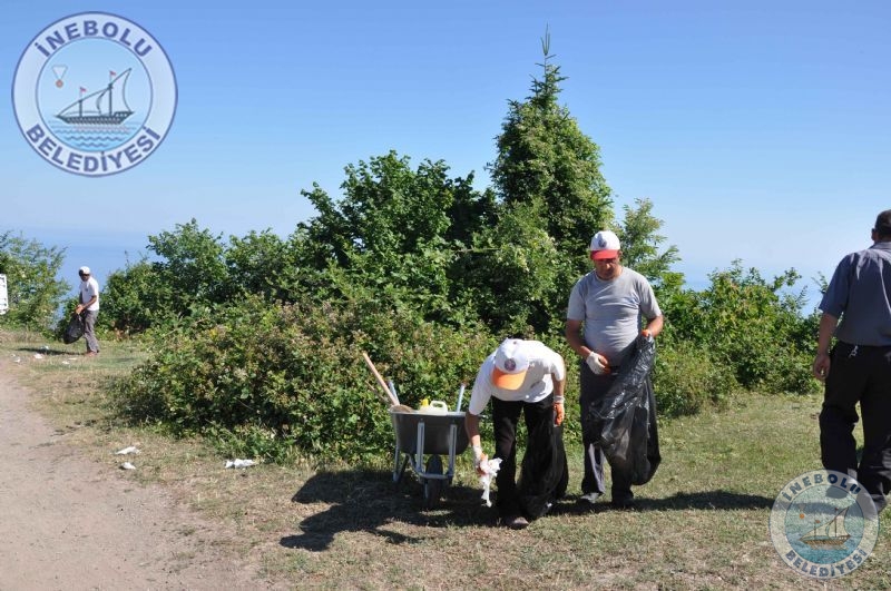 İnebolu Belediyesi ile İşkur İl Müdürlüğü  arasında imzalanan Toplum Yararına Çalışma Programı kapsamında onaylanan Çevre temizliği projesinde görevli işçiler, ilçemiz Geriş Tepesini temizlediler.