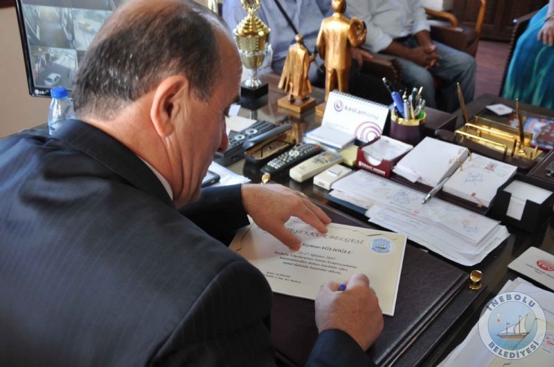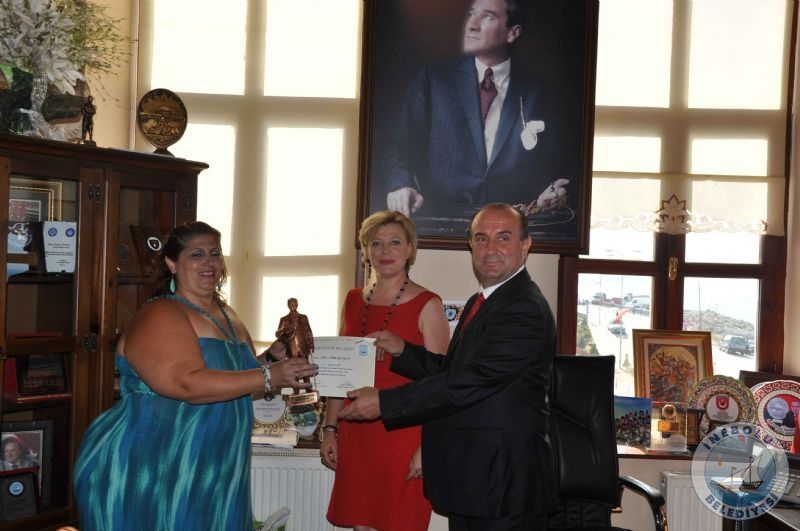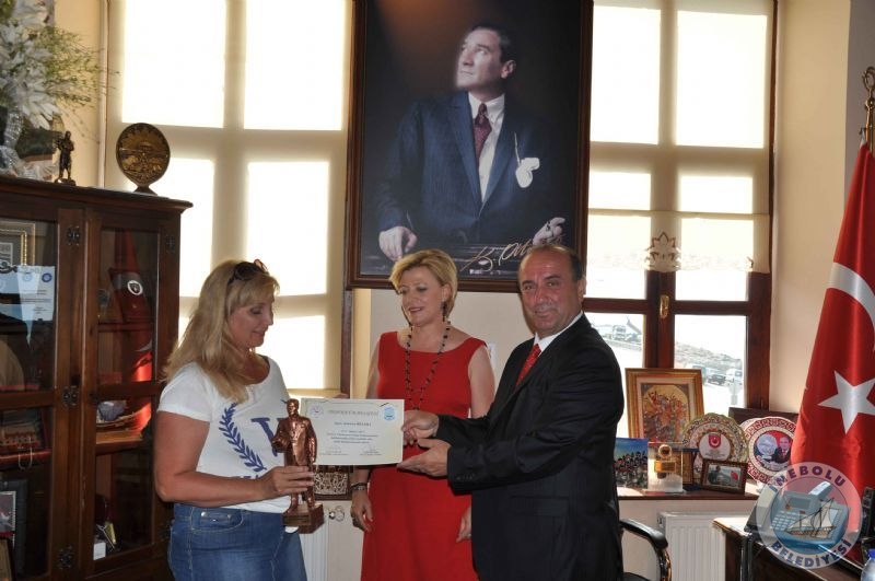 İnebolu Uluslararası Sanat Sempozyumuna katılan Azerbeycan Hümmet KARACA, Gürcistan Teymur AĞLIOĞLU, Kıbrıs Zühre ÖZKARAMNA, Rusya Larissa BELİMA, Türkiye Aynur AÇIKGÖZ’ e Belediye Başkanımız Engin UZUNER gerçekleştirilen ziyarette “Teşekkür Belgesi ve Atatürk Rölyefi” hediye etti.