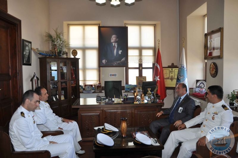 Büyük Önder Mustafa Kemal Atatürk’ün İnebolu’ya Gelişleri, Şapka ve Kıyafet İnkılabının 88.yıldönümü kutlamalarına iştirak etmek maksadıyla ilçemize gelen TCG Fatih Fırkateyni Komutanı Dnz. Kur. Yb. İbrahim Kurtuluş ŞEVİNÇ, TCG Fatih Fırkateyni 2. Komutanı Dz. Kur. Bnb. Mevlüt Savaş BİLİCAN, TCG Fatih Fırkateyni İk.Yzb. Fatih HAVAN Belediye Başkanımız Engin UZUNER’i makamında ziyaret ettiler.